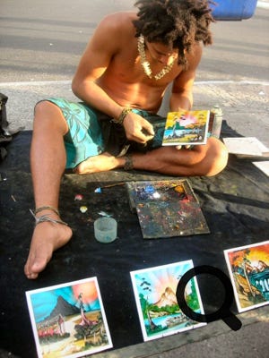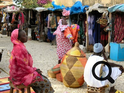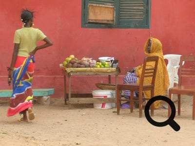 Autour des attroupements de spectateurs gravitent des petits vendeurs de brochettes de fromage, de boissons fraîches, de tasses de café, de colifichets lumineux, …