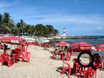 Lorsque les immeubles colorés et les tours modernes de la côte cèdent leurs places au phare de Barra, nous virons dans la Bahia de todos Santos (Baie de tous les Saints).