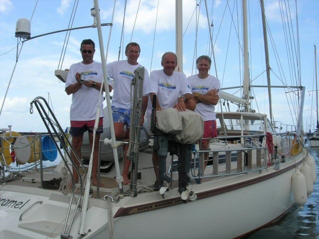 Quittant l’Europe sous la neige, l’équipage s'est installé à bord de Caramel. Didier, Gaétan et Alain sont venus pour en découdre avec une première transat que tout voileux qui se respecte, place haut sur l'autel des mythes à croquer. Catherine reprend l'avion pour Paris où un climat glacial règne en cette fin d'année. Elle nous a bien aidé à préparer l'avitaillement de la transat.