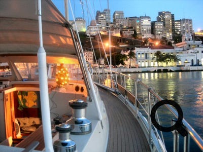 A l'aube, nous croisons nos premières barques de pêche. La ville de Salvador pointe au bout de l'étrave. Je retrouve l'équipage au grand complet dans le cockpit. Ils veulent savourer ces derniers moments de la transat.